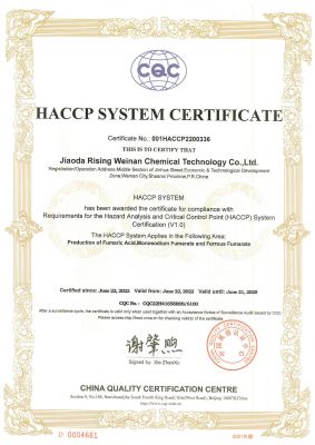 公司證書(shū)公司通過(guò)了ISO9001:2015、HACCP認(rèn)證和FSSC22000等質(zhì)量安全管理體系認(rèn)證。